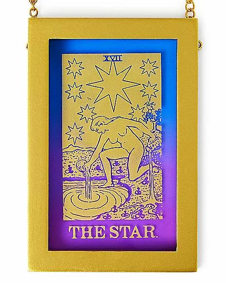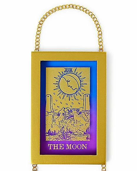 Add the perfect touch of cosmically-inspired style to your home with this 3-Tier Tarot Hanging Sign! This hanging sign features three of the Major Arcana from the tarot deck, The Moon, The Sun, and The Star, and is accented with bright yellow, purple, and blue detailing. Trust the cards and bring home this eyecatching piece!