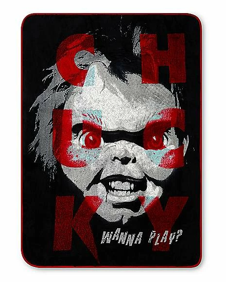 Stay warm and always have something to hide under during your next scary movie with this Chucky Wanna Play Fleece Blanket. Any fan of horror movies and Chucky will love adding this officially licensed Chucky blanket to their couch.ย