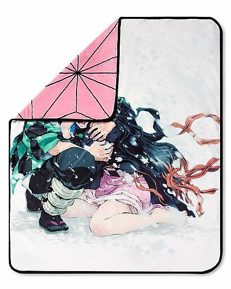 Stay cozy this season with our exclusive Demon Slayer Snow Fleece Blanket! This fuzzy fleece features your favorite characters, Tanjiro and Nezuko, in a recreation of their iconic snow hugging scene. This is the perfect decor addition to any die-hard anime fan’s collection or would be the perfect for any Demon Slayer lover!ย