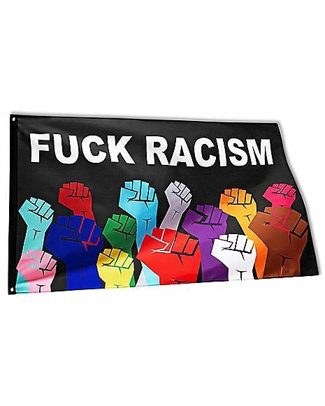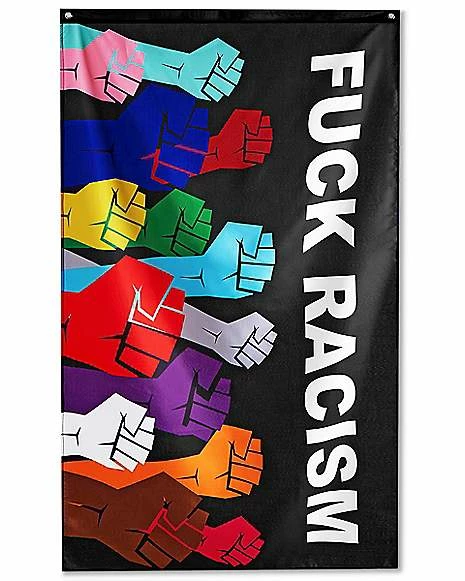 Speak out against racism with this fuck racism flag. With fists held high in a beautiful array of colors, this flag represents diversity and acceptance.