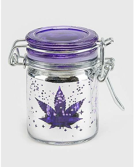 Keep your most important, essential items safe and fresh in this weed leaf galaxy storage jar! This cute jar adds a splash of color to your room, too!