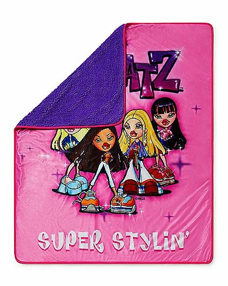 Cozy up with glamorous style when you bundle up with this Bratz Glitter Fleece Blanket. With this cozy blanket you’ll be feeling warm and always showing your fandom for Bratz.ย