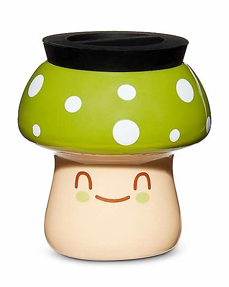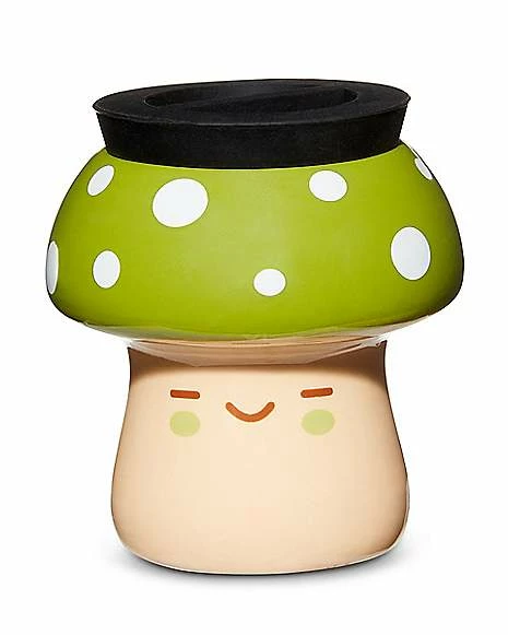 Keep your most essential items safe and add a chill vibe to your favorite room when you use this Green Smiling Mushroom Stash Jar. This three ounce ceramic jar is design to look exactly like a mushroom and will help you keep track of your goodies.Β