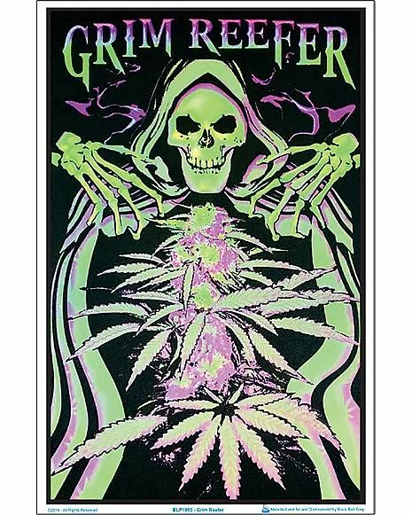 Searching for some trippy dΓ©cor? Look no further than this Grim Reefer poster, which features a black light design thatβs sure to stand out in any room!