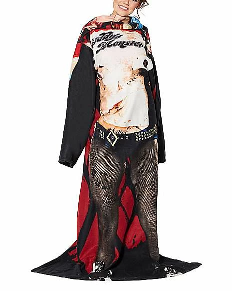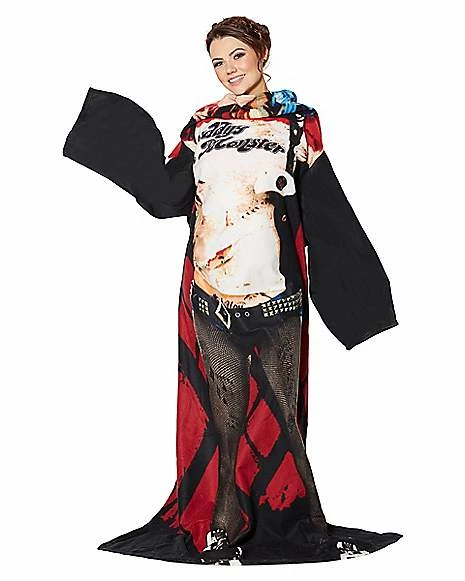 You’ll look just like your favorite villain while you’re warm and cozy in this Harley Quinn blanket with arms. The perfect blanket to cuddle up with after a long day.