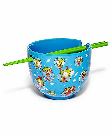 Chow down with your favorite alien invader when you use our officially licensedΒ Invader Zim Bowl with Chopsticks. This bright bowl features all of Zim’s iconic faces and a pair of neon green chopsticks. This is the perfect addition to any die-hard fan’s kitchen collection!
