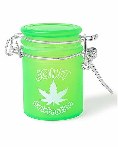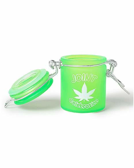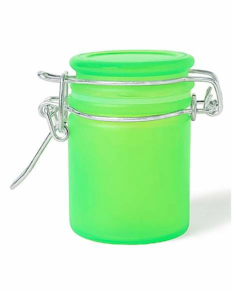 Looking for a place to keep your essentials safe and fresh? Look no further than this storage jar! This container will make a dope addition to any room with its translucent bright green color and leaf design!