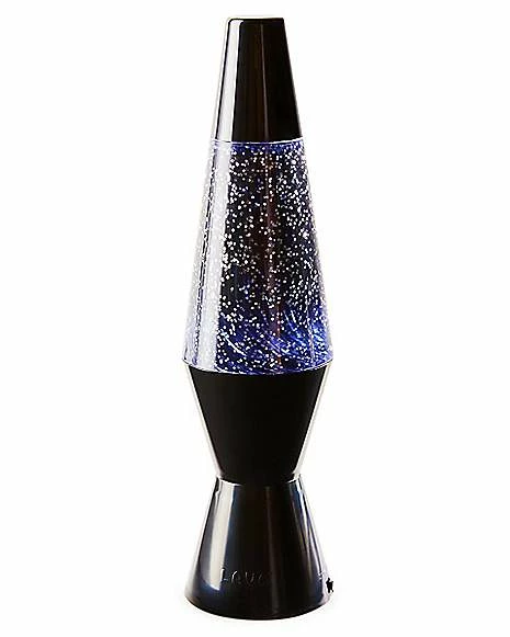 Transform your college dorm or bedroom at home with this Mini Black Glitter Lamp! This lamp is 10 inches tall and runs on batteries.
