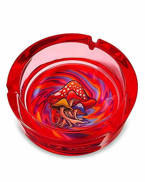 Put out your smokes in style with this red mushroom swirl glass ashtray! This ashtray will add some bold color to your home.