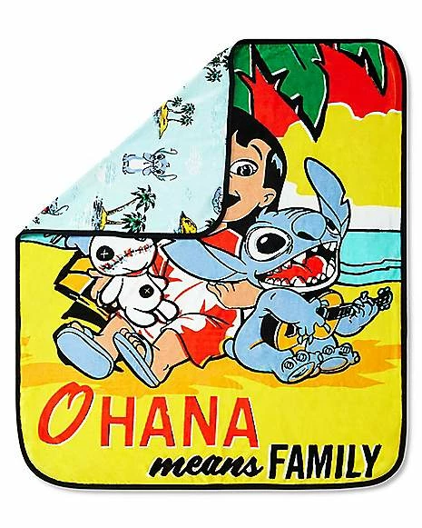 Learn the true meaning of Ohana with this officially licensed Lilo & Stitch fleece blanket. Have double the snuggles with this double-sided design!
