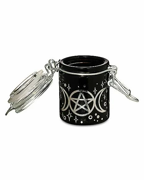 Keep your goods stored safe and secure when you put them in this pentagram stash jar. With an airtight seal and cool pentagram design this storage jar is perfect for staying discreet and keeping your goods to yourself.Β