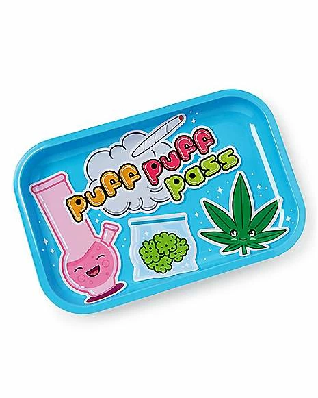 Put the goods on a flat and happy surface with thisΒ Puff Puff Pass Tray! This cheery tray acts as a drink holder, jewelry storage plate, mail tray, or whatever you can imagine!