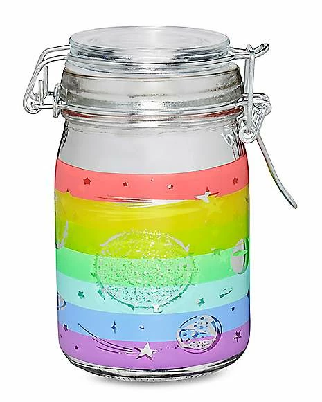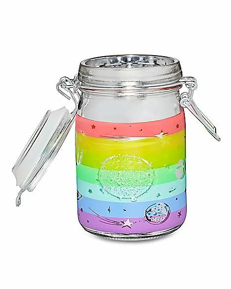Store your favorite essential items in this convenient rainbow frosted stash jar. This colorful glass jar will be the perfect accent to your bedroom. With its airtight lid, it’s sure to keep whatever you stash in it safe.