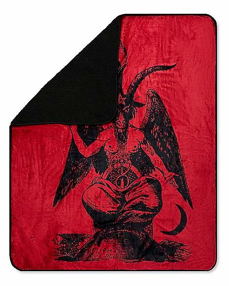 Cozy up with Baphomet! This soft-as-butter fleece blanket features a black Baphomet design over a rich red background. On the opposite side, warm black sherpa is waiting to embrace you.