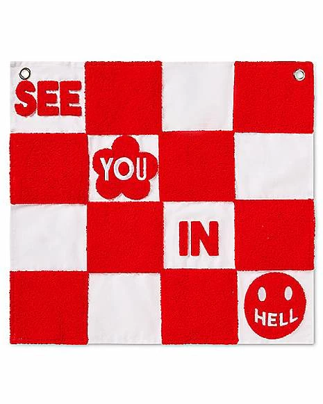 Let everyone who enters your home know how you really feel with this funny See You In Hell Tapestry! This mini red and white tapestry is the perfect way to make your bedroom or hallway stand out!