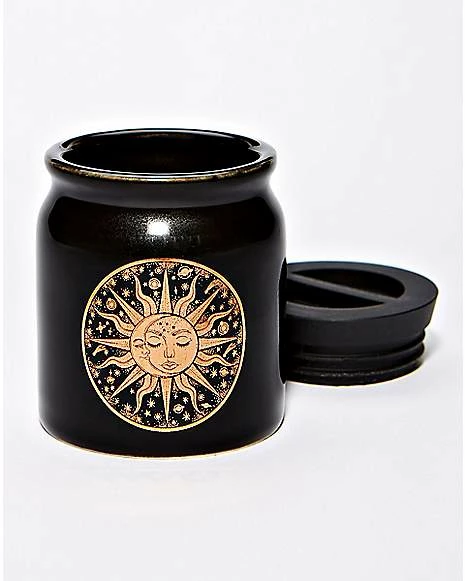 Keep all of your valuables safe. This sun moon storage jar will keep it secure and out of sight!